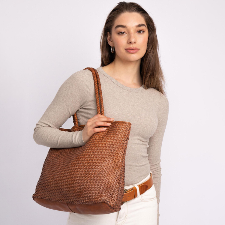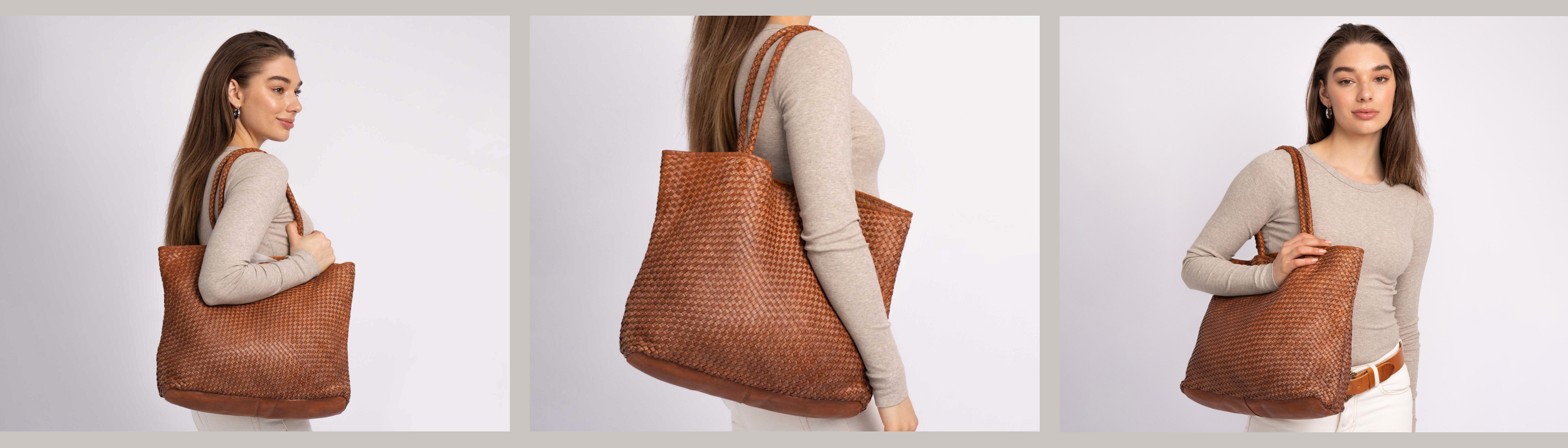 Taylor │ Woven Leather Tote Bag - Black