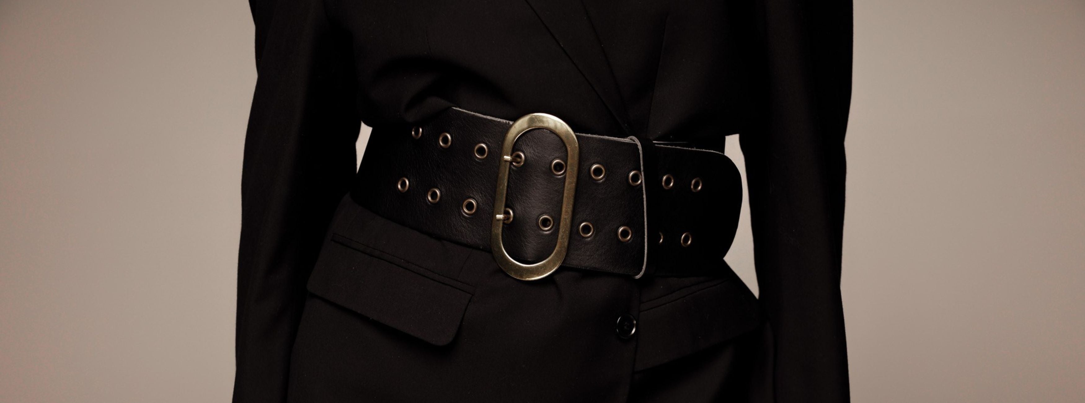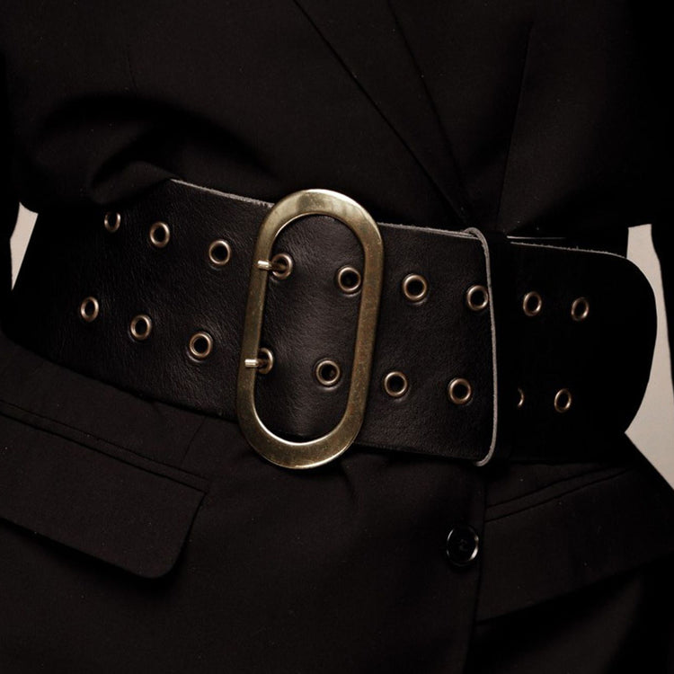 MADE TO ORDER Rena │ Wide Waist Belt with Double Grommets - Black