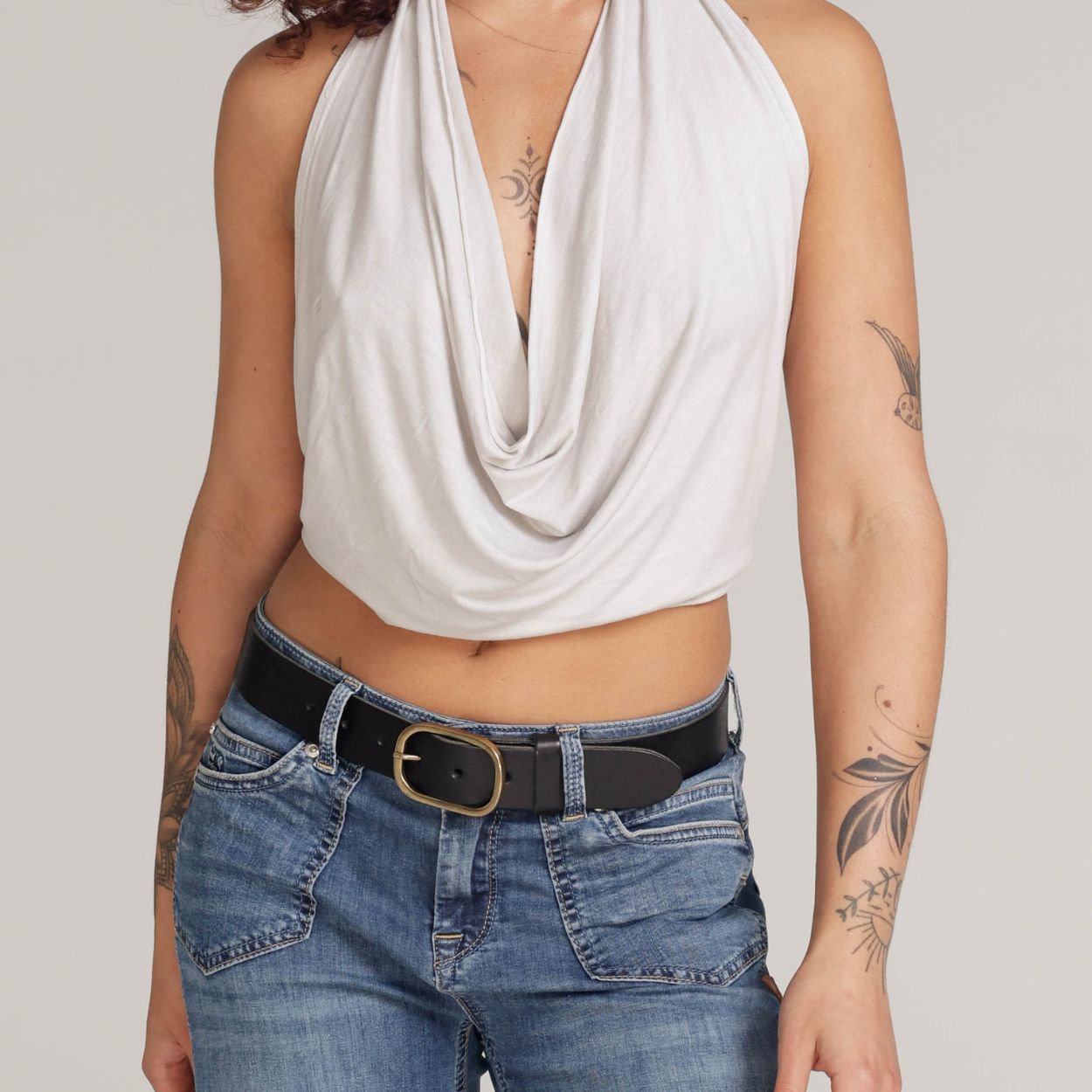 Experience a luxurious upgrade to the classic leather belt with Marin. This premium leather belt boasts a soft and supple texture that contours perfectly to your waistline, providing both comfort and style. The bright gold tone of the statement buckle adds a necessary touch of statement to even the simplest of outfits. Simply slide it through your belt loops and let Marin's lavish flair do the talking. This women's leather belt is sure to become a staple in your everyday wardrobe, effortlessly enhancing your style with its elegant and sophisticated design.